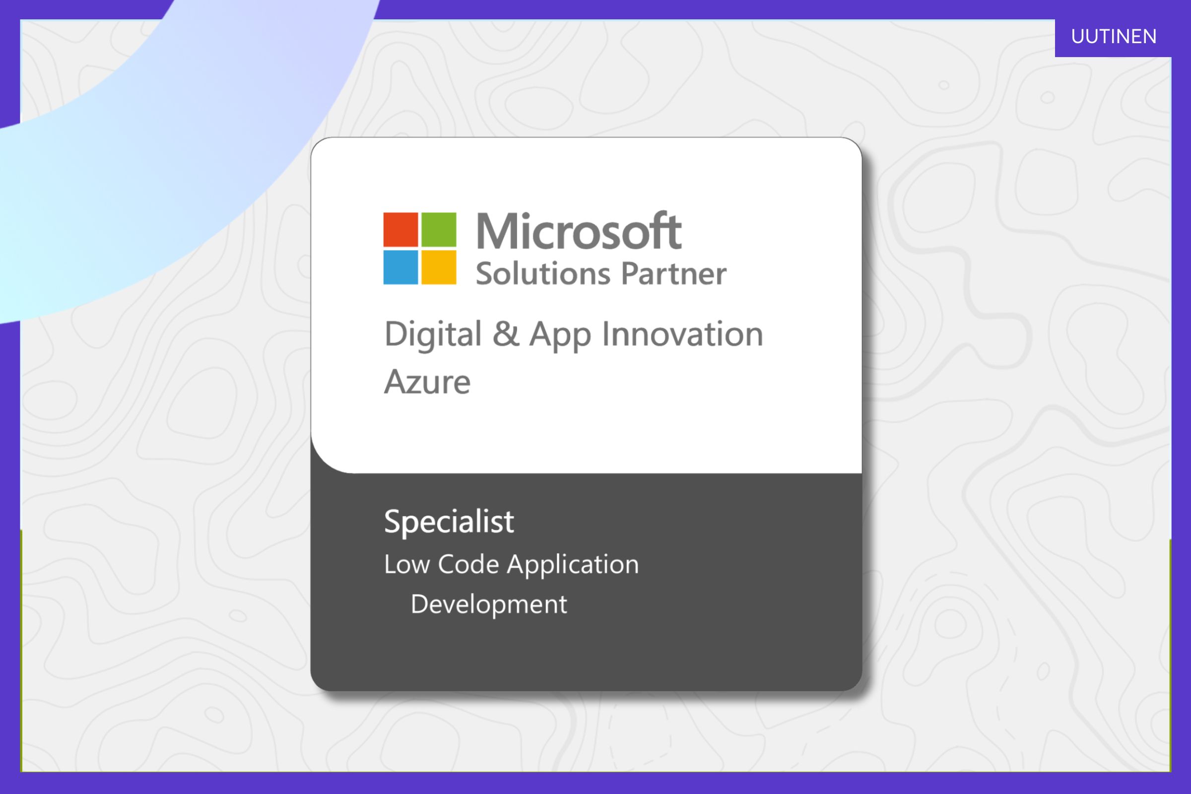 Microsoft Low Code Application Development Specialization myönnetään kumppaneille, jotka ovat todistetusti onnistuneet low code -ratkaisujen käyttöönotossa Power Platformin avulla. Tunnustuksen ansaitsemiseksi kumppanin on täytettävä joukko kriteerejä kuten teknisten sertifiointijen läpäiseminen, asiakasreferenssien osoittaminen ja aihealueelle relevantin tarjooman toimittaminen. Tunnustus antaa kumppaneille mahdollisuuden erottautua markkinoilla ja saada ainutlaatuisia etuja Microsoftilta. Tunnustus on voimassa vuoden kerrallaan.