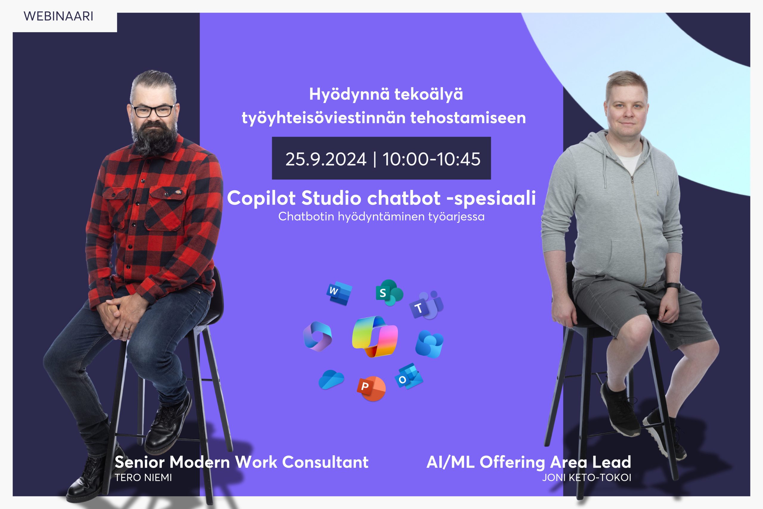 Syyskuussa on vuorossa Copilot Studio chatbot -spesiaali, jossa käydään läpi chatbotin hyödyntämistä työarjessa esimerkiksi HR:n ja sisäisen viestinnän saralla.