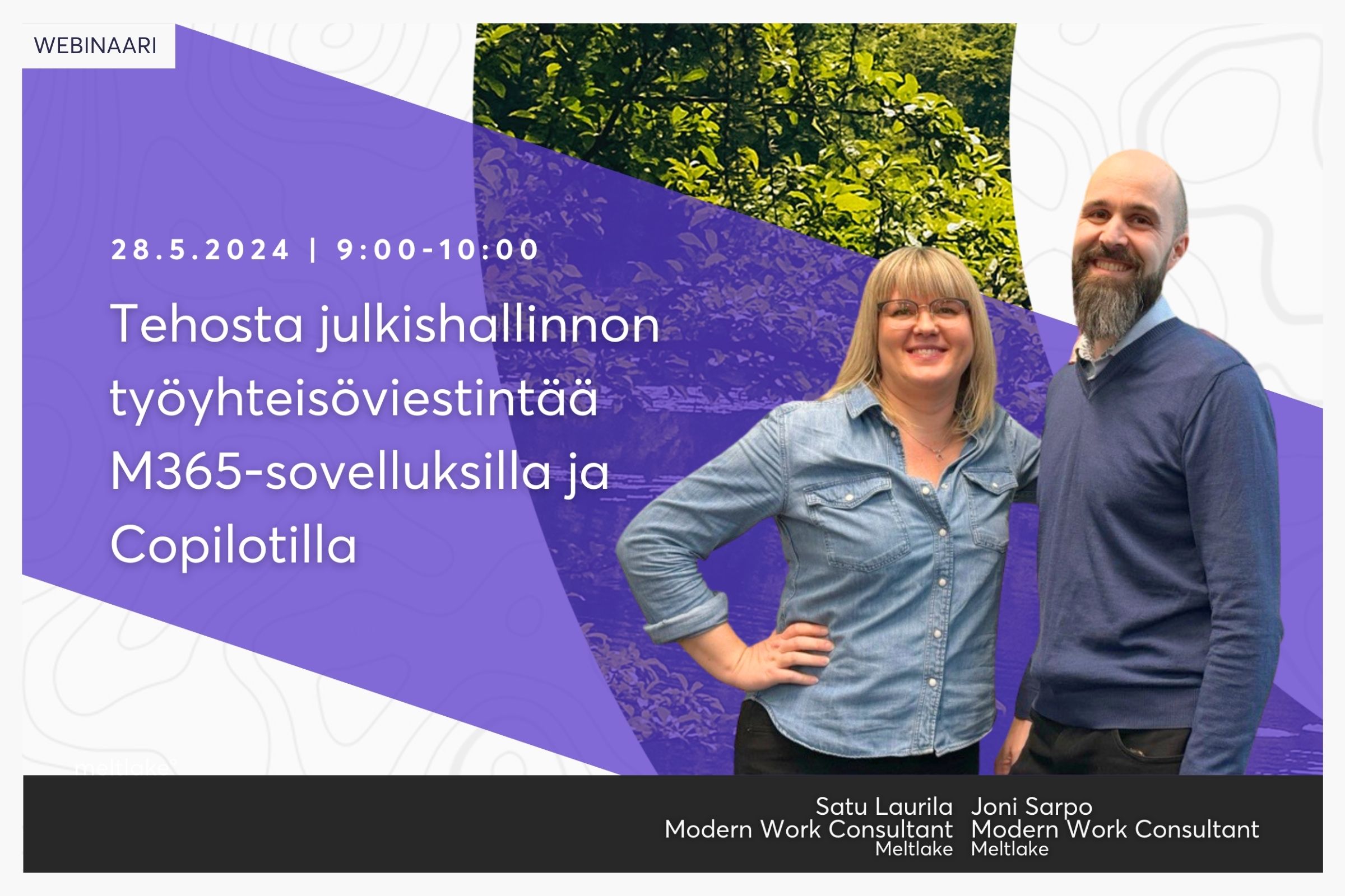 Tervetuloa mukaan Tehosta julkishallinnon työyhteisöviestintää M365-sovelluksilla ja Copilotilla-webinaariin 28.5.2024 klo 9:00-10:00